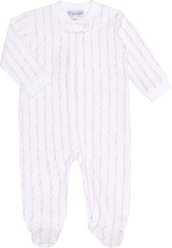 Made from the softest 100% Pima cotton, this footie features a charming twirl pattern that adds a touch of elegance. The zipper closure makes dressing and diaper changes quick and easy, while the covered feet keep tiny toes warm and cozy.