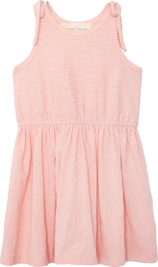 Brighten up her wardrobe with the Pinky Linky Dress. This vibrant pink silhouette brings a burst of joy to family gatherings and playground adventures. Crafted from a soft, textured knit blend, it ensures she stays cool and comfortable all day. The dress also features knot details on the straps for an adorable touch.