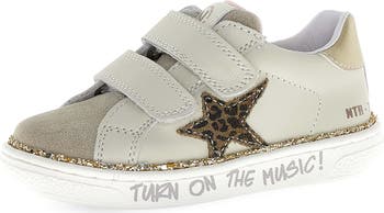 A padded collar and breathable leather lining provide cool comfort for tiny toes in this low-profile sneaker fitted with adjustable straps that offer a secure and customized fit.