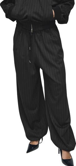 Balloon legs add playful movement to these pinstripe pants that are perfect for casual-cool office days and running errands on the weekends.
