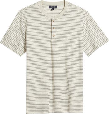 Ringed in slim, yarn-dyed stripes, this henley made of cotton and linen features a comfortable fit that lets you move and relax with ease. Pair it with practically anything when you want to emphasize the laid-back comfort of a favorite casual look.