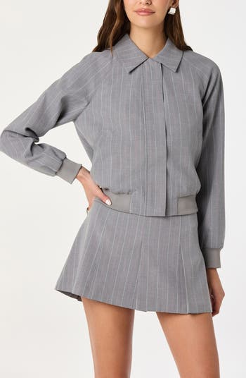 Two-tone pinstripes bring suiting-inspired polish to this cropped flight jacket finished with a clean, minimalist hidden placket.