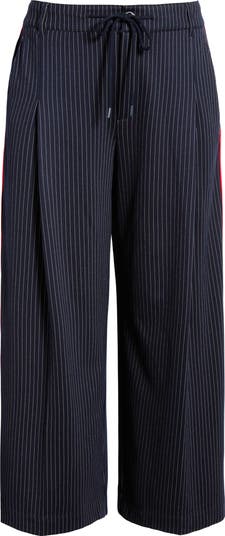 Contrast stripes down the side put a sporty spin on these wide-leg pants structured with crisp front pleats.