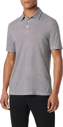 Yarn-dyed pinstripes ring a polo that wicks away sweat and breathes easy thanks to its blend of hemp and sustainably produced lyocell.