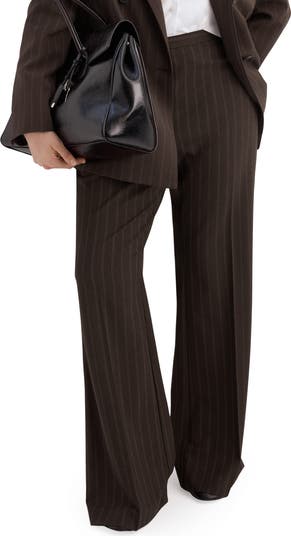 A clean front streamlines the silhouette of slimly striped pants that work for desk days and drinks dates.