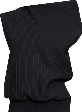 Pin-thin stripes bring a tailored aesthetic to this avant-garde pullover from the spring '26 collection cut with signature asymmetries and anchored by a ribbed hem.