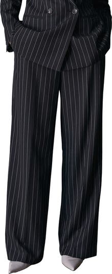 These pinstripe wide leg trousers embody Karen Millen's signature blend of sophistication and contemporary style. The tailored wide leg cut creates a dramatic silhouette that moves beautifully with every step, whilst the high-waisted design accentuates your natural curves. Style with a fitted blouse tucked in to highlight the waist, or mirror the runway look with the matching pinstripe blazer for a powerful coordinated ensemble.
