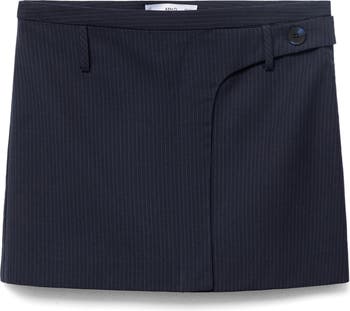 Pinstripe stretch suiting fabric accentuates the polished look of this miniskirt detailed with a wrapped front.