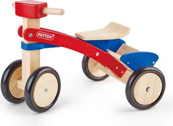 The four-wheel design of this sturdy wood trike helsp little riders develop muscle strength and balance as they explore their world. The thick rubber tires are suitable for indoor or outdoor use and the water-based lacquers ensure a safe finish that's durable enough to stand up to years of play.