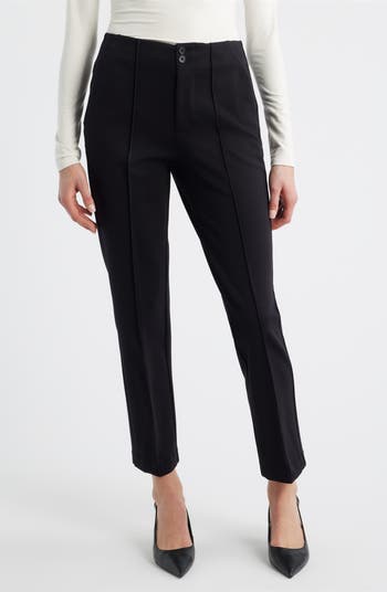 Pintuck pleats polish staple pants cut in a slim, tapered-leg silhouette from a seasonless stretch-enhanced fabric.