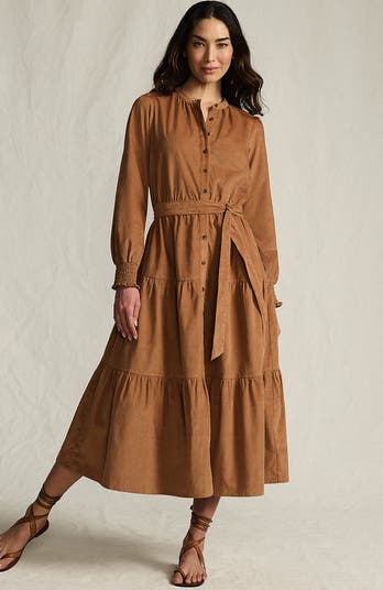 This dress is a perfect mix of everyday comfort and classic style. Made from soft cotton pinwale corduroy, it features smocked sleeves, shirred shoulders, and a tiered skirt, adding graceful movement. The elastic waist and self-tie belt allow you to shape the fit to suit your mood. Finished with a mandarin collar and practical pockets. It's the kind of dress you'll keep coming back to.