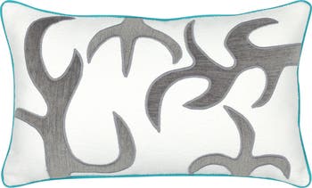 Add a touch of the American West into any space with a dose of whimsy and design. This pillow features a plush white boucle ground and a hand-stitched design in gray velour. Turquoise trim completes the look.