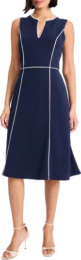 Contrast piping frames this sleeveless midi dress cut in a preppy fit-and-flare silhouette.