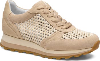The airy breathability of perforations gets an elevated update with the open-knit panels of this suede-and-leather sneaker grounded with TRUFOAM® cushioning and a two-tone low-wedge heel.