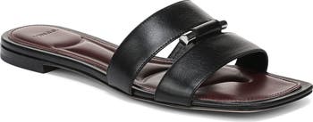 Polished hardware highlights the minimalist slide straps of this breezy go-to sandal.