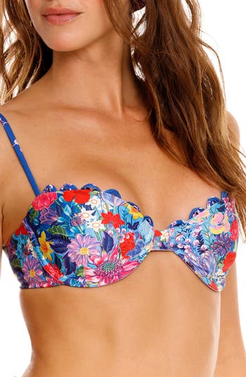 Underwire cups lend support to this dainty, scallop-trimmed bikini top with slender adjustable straps for a personalized fit.