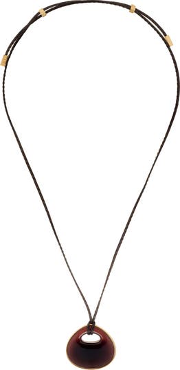 A polished pendant provides a stunning focal point for this adjustable leather cord necklace.