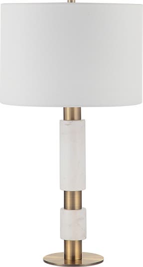Gorgeous marble and brassy brushed iron define this lamp's sleek design that make it a stunning addition to any room in your home or office.