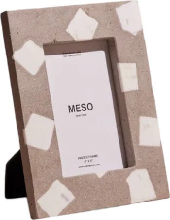 Concrete Picture Frame 4" x 6" with white marble inlay. Fair Trade Certified.