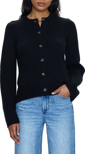 Extended ribbing at the sleeve cuffs adds a modern style point to a classic cardigan popped with a pair of pockets and knit from a blend enriched with wool, cotton and cashmere.