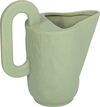 - A lovely pitcher shaped vase with a sand finish and a mint green color that adds a fresh and soothing touch to the home