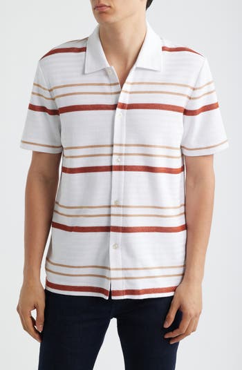 Variegated stripes and a clean placket define a short-sleeve button-up imagined in breathable cotton that's cool, comfortable and always a smart option.