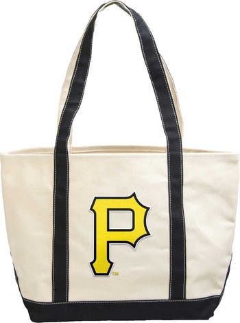 Pack all the essential items you need for the day in this Pittsburgh Pirates tote bag. Made from durable canvas fabric, its contrasting trim and straps make the Pittsburgh Pirates logo more noticeable. There's plenty of room in the open compartment to store small items, and long handles provide a comfortable carrying position.