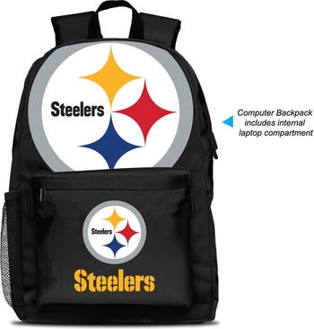 Carry all your game day essentials with you with this Pittsburgh Steelers MOJO Large Logo Fan Backpack. It has a main zippered compartment to keep belongings safe, an exterior side pocket, and an interior laptop sleeve for convenient electronic storage. Made from durable polyester, this backpack features screen-printed Pittsburgh Steelers graphics, so your fandom will be on full display.