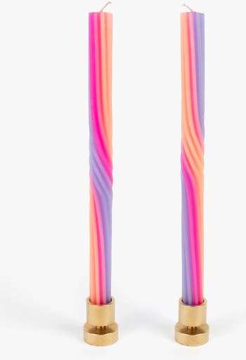 Pivot Candles showcase delicate gradients that twist around their form in a smooth, pivot-like pattern. Designed by Dutch designer Lex Pott, they bring texture and depth to any table setting. Each pack includes two unscented candles that fit standard candleholders.