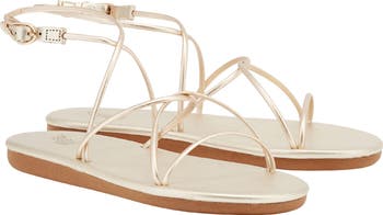 Metallic tubular straps crisscross atop a versatile sandal perfect for anything from casual lunches to date nights.