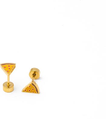 Mini pizza studs with gold + enamel detailing and a secure, ouch-free screw-back post!