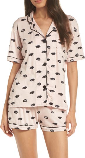 Make cozying up by the fireplace even better with these gift-worthy short pajamas cut from soft jersey in fun prints.