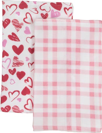 Plaid and Hearts Valentine's Day Kitchen Tea Towels - 26" - Pink and Red - Set of 2