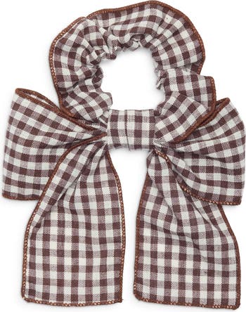 A sweet plaid pattern and charming bow enrich this scrunchie that will instantly upgrade your stylish updos.