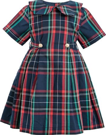 A timeless tartan piece with tailored charm, this dress blends heritage patterning with classic structure—perfect for cooler days and polished occasions. Oversized self-tie bow at the waist adds volume and vintage charm. Pleated skirt enhances movement and creates a full, classic silhouette.