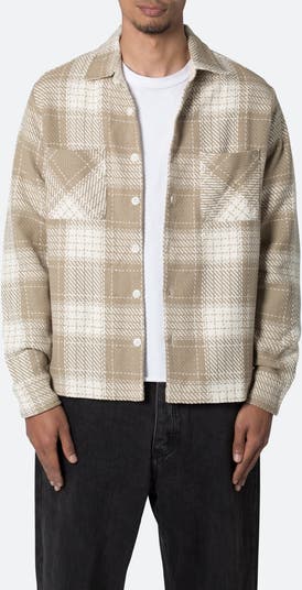 Layer up in the roomy fit of this button-up cut from hearty cotton flannel in a softly hued plaid.