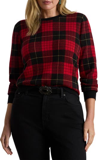 Refresh you seasonal look with this crewneck cotton-blend sweater knit with a slim fit and covered in festive plaid.