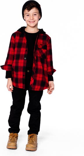 Our Plaid Flannel Shirt With Hoodie Red and Black blends cozy comfort with rugged flair. Designed in soft plaid flannel with a jersey hood, this casual shirt features a button front closure, long sleeves with buttoned cuffs, and a chest pocket with a flap. Perfect for layering over a tee or wearing on its own for festive family moments.