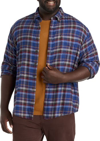 It's hard to resist the cozy warmth of a flannel shirt, especially in a fresh-for-the season blue and purple plaid pattern​ like this one. Designed at DXL in proper proportions that are made to fit and flatter B​ig and Tall guys, it's made of soft cotton flannel. The roomy fit layers comfortably over your favorite tees and allows for the freedom to move without restriction. Pair it with jeans for a complete, casual look.​​​