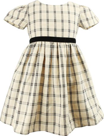 Plaid Flutter Sleeve Cotton Dress