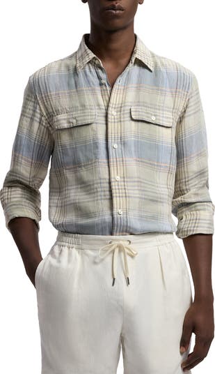 Designed for days that call for comfort but still want polish, this shirt is made in Italy from airy linen with a vintage-inspired feel. Custom-dyed yarns create a madras-style plaid that feels relaxed yet intentional. Mother-of-pearl buttons finish the piece with a clean gleam that reads unmistakably special.
