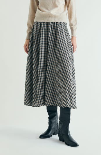 Check Skirt.Regular fit with pleats at the waist and slightly A-Line silhouette