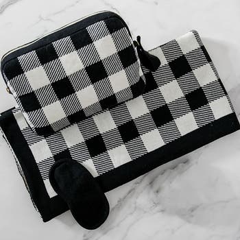 Plaid Organic Cotton Travel Blanket and Eye Mask Set