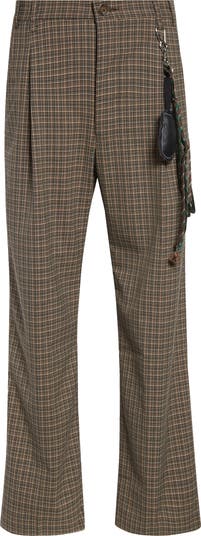 Tailored with crisp pleats and patterned in plaid, these pants are punctuated with a clipped-on lanyard that seals the style with a utilitarian twist.