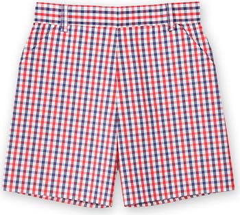A warm-weather essential with timeless appeal, these shorts are crafted from red, navy, and white plaid seersucker in soft, breathable 100% cotton. Designed with front slant pockets, belt loops, and a neat fake fly, they offer a polished look with the ease of a pull-on style. A back elastic waistband ensures all-day comfort, making them perfect for parade days, summer gatherings, and Fourth of July celebrations. Easy to pair with polos, tees, or button-downs, they’re a versatile staple for the season.