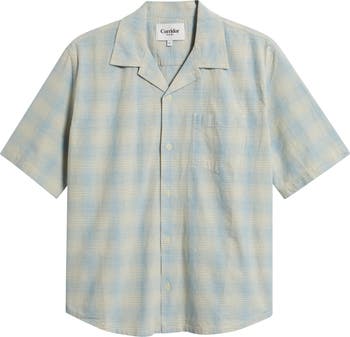 Breeze through your downtime in this camp shirt crafted from a cool cotton-linen blend featuring a laid-back plaid that's perfect for casual days.
