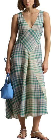 Allover checks enhance the charm and polish of this lightweight sleeveless maxi finished with a flowy flared skirt.