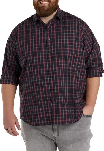 Designed by DXL with proper proportions and a flattering fit for Big and Tall guys, this large plaid sport shirt is the update your wardrobe needs right now. The timeless style looks great with twills or jeans. It's made of soft cotton and is cut to layer comfortably over a T-shirt. Roll up the sleeves for a more casual look with jeans or pair it with dressier pants and a sport coat for work. It's truly that versatile._x000D_