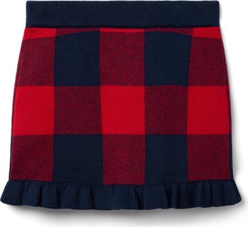 Keep style in check with our soft sweater skirt. Featuring a holiday-ready plaid with a ruffle hem, just for the frill of it.