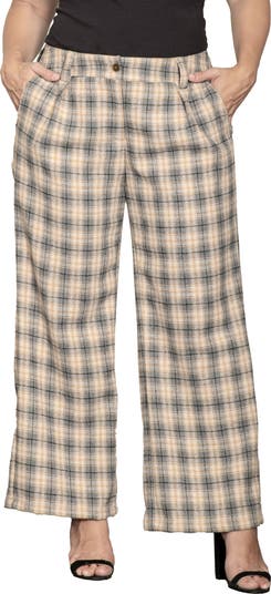 Elevate your workday game in these sophisticated high-waisted pants styled with classic plaid and a flattering wide-leg silhouette.